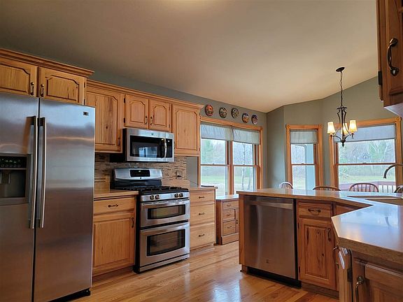 Spectacular, private country home on over 8 acres created for enjoying the beauty of the nature. Relax on the deck and watch the wildlife attracted to your two ponds surrounded by woods. Forget stairs! This home is all on one level. Huge master suite with tiled shower, step-in tub and walk-in closet. Second bath has soaker tub to banish life's tensions. Gorgeous wood floors in much of the home. Big windows let in great views and so much light! Gas stove with double oven and pantry in the kitchen. Large family room. Garage is partially insulated and heated. Yard is partially fenced off.