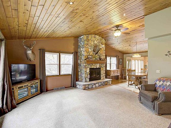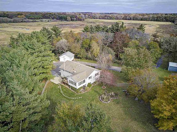 Country Paradise in Lake Mills School District! This property has it all! Wooded lot, storage buildings, pasture, beautiful yard & views! Surrounded by non-buildable recreation land, this stunning home on 4+ acres is the gem you have been looking for. Completely updated home with vaulted ceilings, stone fireplace and gorgeous woodwork. Sun room with gas wood stove and floor to ceiling windows leads to composite deck and fenced yard. Lower level features 4th bedroom/office and family room. Additional 24x24 garage, 20x30 barn and 16x20 barn plus shed! This is a rare find in a great location!