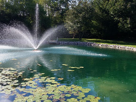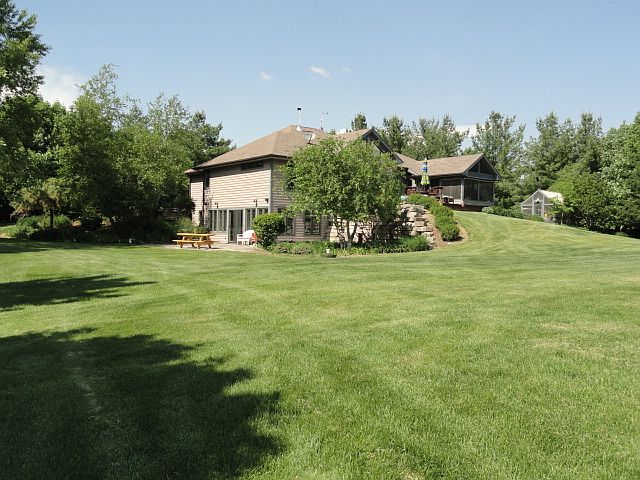 Wooded, private estate, situated on 6 lush acres featuring open concept living space, cherry floor, cathedral ceilings, majestic views and fabulous walk out lower level. This modern ranch has a spacious gourmet kitchen with new top-of-the-line appliances, enclosed screen porch, and master suite with jetted tub and walk-in-steam. Lower level includes exercise room, tanning bed office/bedroom, and recreation room with wet bar and pool table. Also on the property is a separate pole building for additional storage and convenience. fabulous backyard with private pond and fountain completes this majestic view.