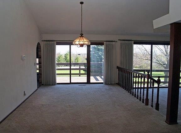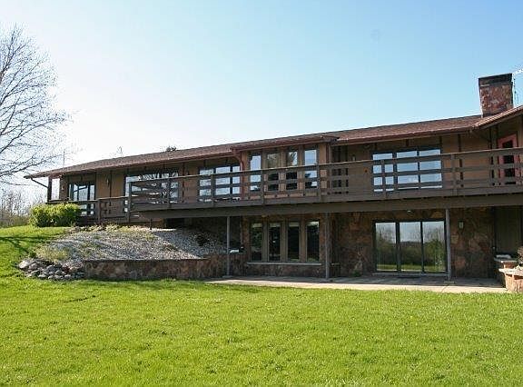This rambling 6119 Sq. Ft. ranch sits grandly on a scenic five acre parcel, with Southern exposure, just west of Delavan. Included are four bedrooms; 4.5 baths, formal dining room, first floor family room w/fireplace; walk-out lower level rec. room with fireplace; sunken bar; an indoor swimming pool approx. 17x35; a two car attached garage; a 3 car detached garage; and separate 16x20 storage shed. Plenty of room for your family and guests too!