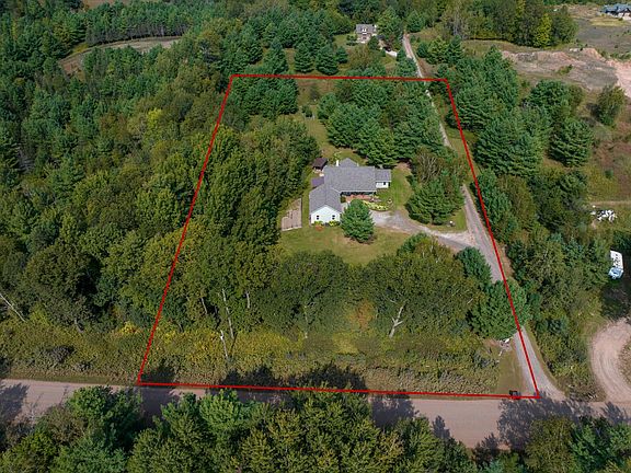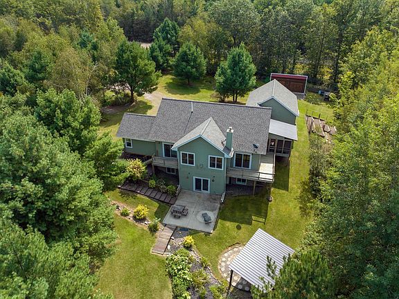 Extremely well cared for 3000 sq ft, 3 BR / 2.5 BA, country home is a must see! Built in 2011, this perfectly designed home offers a large living room with vaulted ceiling and cozy fireplace, free flowing kitchen with coffee bar, main floor laundry and owner’s suite with a sizable office. Walkout lower level has a great family room with a kitchenette and freestanding fireplace for added entertainment. Step onto the wraparound deck or back patio to savor summer BBQs & watch wildlife roam along a beautifully landscaped yard. The attached 24 x 30 ft insulated garage w/ attic storage and 15 x 27 ft shed with handcrafted custom built barn doors offers ample storage space. On this 4 acre parcel enjoy a peaceful garden area, beautiful flower gardens, awesome fire pit area, arbor room, hiking trails, and a bridge. Newly blacktopped road w/ ATV access right from your front door and enjoy the great Shell Lake recreational area with many lakes, sandy beach etc. New roof 2022 and some new siding.