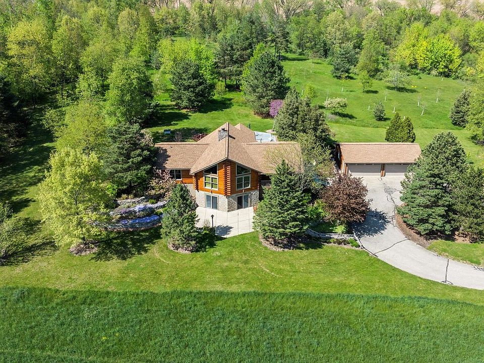 Park like setting ready for you to come and savor each season in this gorgeous log home along with over 27 acres ready for you to be immersed in natural beauty, enjoy birds and wildlife. Just 15 minutes north of Lake Geneva, this stunning home boasts beautiful hard wood floors and cabinetry throughout, an open concept living floor plan , stone fireplace, a 3 season room that leads to a beautiful trex composite deck for outdoor entertaining or relaxing. The walk out lower level has radiant heated floors and plenty of space to enjoy. Two additional heated outbuildings, in addition to the garage, are ready for your creative ideas or additional storage. This property is one you must see! Additional photos coming soon.