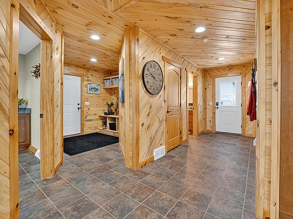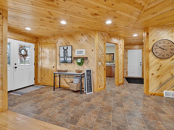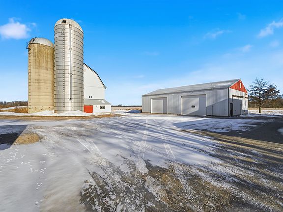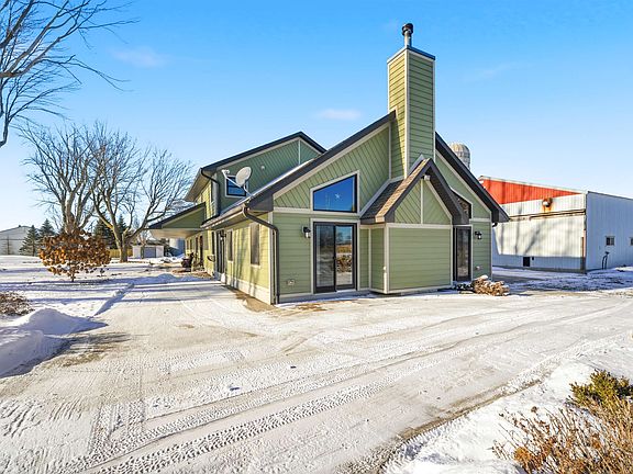 Step inside this knotty pine masterpiece featuring vaulted ceilings, exposed beams all situated on 16.6 acres. The open floor plan flows beautifully from the spacious living room with a wood-burning fireplace to the gorgeous kitchen with cabinets galore, a massive island, and an inviting dining area. Outdoors is a dream for horse lovers featuring 7 acres of enclosed electric fencing, ample pasture space, and room to add stalls or an arena. Multiple outbuildings include a 46x60 heated shop, 24x36, 12x16, and 50x90 structures, plus silos, grain bins, and utility sheds offering endless storage for tack, feed, trailers, and equipment. Bring your horses and your hobbies this one has it all! Priced below appraised value—gain instant equity!