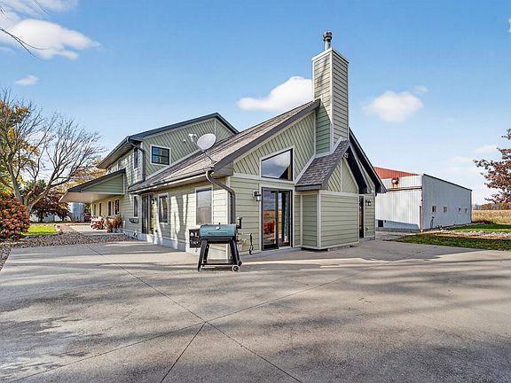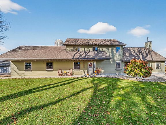 Step inside this knotty pine masterpiece featuring vaulted ceilings, exposed beams all situated on 16.6 acres. The open floor plan flows beautifully from the spacious living room with a wood-burning fireplace to the gorgeous kitchen with cabinets galore, a massive island, and an inviting dining area. Outdoors is a dream for horse lovers featuring 7 acres of enclosed electric fencing, ample pasture space, and room to add stalls or an arena. Multiple outbuildings include a 46x60 heated shop, 24x36, 12x16, and 50x90 structures, plus silos, grain bins, and utility sheds offering endless storage for tack, feed, trailers, and equipment. Bring your horses and your hobbies this one has it all! Priced below appraised value—gain instant equity! Showings start 11/05/25 offers due on 11/10/25