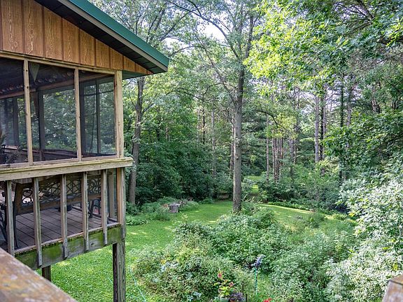 Your private Country Paradise awaits! This charming 2-bed, 2-bath ranch rests on 8.66 SCENIC ACRES! with its own pond & creek. Offering peace and privacy, this well-maintained home is perfectly set in a rural location- ideal for nature lovers, hobby farmers, or anyone seeking a quiet escape, yet still close to nearby towns. The property features serene views, open space, and a warm inviting interior. Inside you will find a wood-burning fireplace, a spacious living area filled with natural light and comfortable living space throughout. The 1200 SF walkout basement offers valuable bonus space with endless potential for extra living area, workshop, or guest suite. Enjoy the outdoors from your screened porch or relax on the wrap-around deck. Don't wait and schedule a showing today!