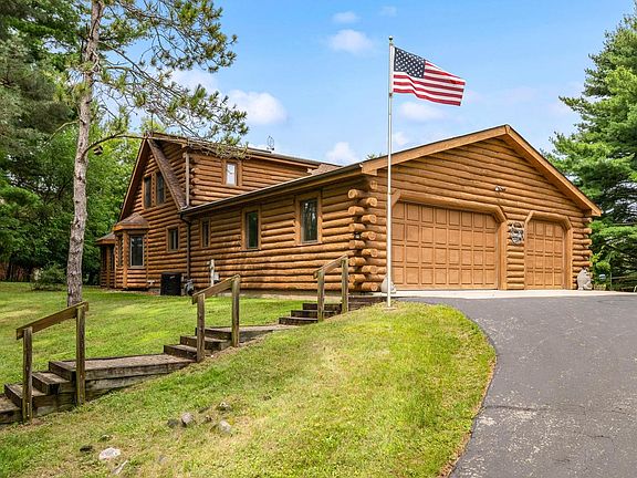 Peaceful setting with modern comforts--perfect for nature lovers and those who value craftsmanship. This delightful 2 bed, 2.5 bath Wilderness log home on 1.47 acres backs up to Lake Ripley Conservancy. Enjoy a dramatic wall of windows, open staircase to the loft, wood floors, 3 season room, & a cozy free-standing stove. Spacious kitchen features a double-sided breakfast bar & gas stove. The large open deck offers serene views of the manicured yard and a 65-year-old lilac bush! Primary suite has a Jack & Jill bath with walk-in shower. Extras include remote skylights, storm shelter in basement, stairs from 3-car garage to basement, security system, and wired RV parking. Just a short drive to public park at Lake Ripley and charming downtown Cambridge with restaurants & quaint shops.
