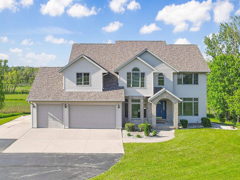 Breathtaking views and panoramic sunsets are the backdrop to this custom built home situated on 12+ acres. Step inside to find a inviting foyer with front office with French door & open staircase to the upper level. A sunlit living room at the front of the home captures tons of Southern sun! The eat-in kitchen features a full appliance package, hard surface countertops, adjacent formal dining room (or flex room), & a comfortable family room with gas fireplace. The upper level features a primary master suite with attached bath with shower & separate whirlpool tub! In addition, enjoy 4 additional bedrooms and a second full bath! Additional features include a main full bath, finished bath and office in the LL, walk-out LL access for future finishing, and acres of land to call your own!