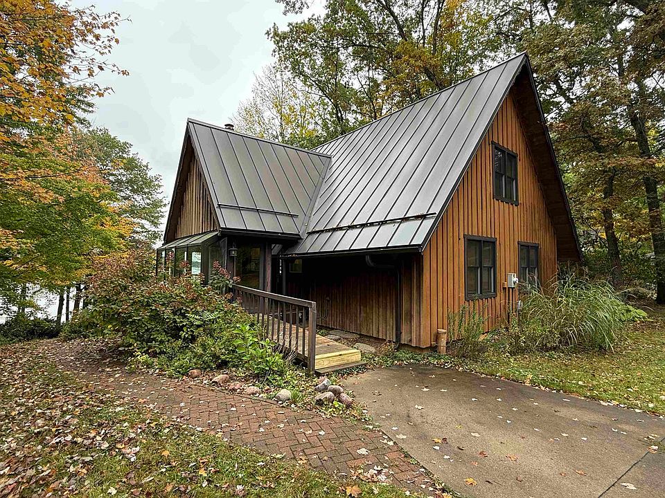 Wake up to gorgeous views of Legend Lake with 44 feet of main lake frontage. This inviting year-round cabin combines rustic charm with modern comfort. You’ll love the wall of windows overlooking the water and the warm, open feel throughout, including a wood burning fireplace in living room. The main floor features a primary bedroom suite with a spacious bathroom and walk-in tiled shower. Upstairs, the open loft offers a second bedroom, full bath, and plenty of space for extra beds or a cozy sitting area. The walk-out basement includes a working sauna and plenty of storage. Updates include a newer metal roof and tankless water heater for efficiency. A perfect spot to relax, recharge, and make lifelong memories.