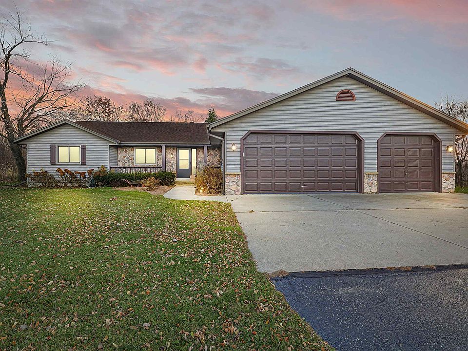 Own this recreational paradise featuring a 3BR, 2 1/2 bath Ranch on 21 acres of wooded and rolling land, with a significant pond in the heart of the Kettle Moraine! The 1,616 sq. ft. dwelling features a living room with vaulted ceilings and stone fireplace, 1st floor laundry, new stainless appliances, plus a 3 car garage. An additional 2 car garage and shed provides additional storage. Site may be dividable.
