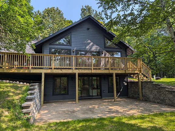 This 3 BR 3 BA Elk River home has been completely renovated and is ‘like new’, with modern rustic finishes and a private location offering wooded privacy and panoramic river views. The front entry is spacious and welcoming, with 2 closets, and opens to the Great Room, with a rustic knotty pine wall and cathedral ceiling. The chef’s kitchen has all new custom wood cabinetry and back splash, and a custom live edge countertop with island, great for cooking and entertaining guests. The dining area walks out to the L shaped riverside deck, with gorgeous views and plenty of space for relaxing or grilling. The Primary King Size Suite has his and hers closets and a full bath with new tile shower, and there is a spacious Guest Room. The rear entrance has a closet and full bath with custom tiled shower. The upper loft bedroom is spacious, and the lower level has a family room, full bath, 2 bonus rooms and dedicated laundry. THIS IS A MUST SEE FOR ANYONE CONSIDERING NEW CONSTRUCTION.