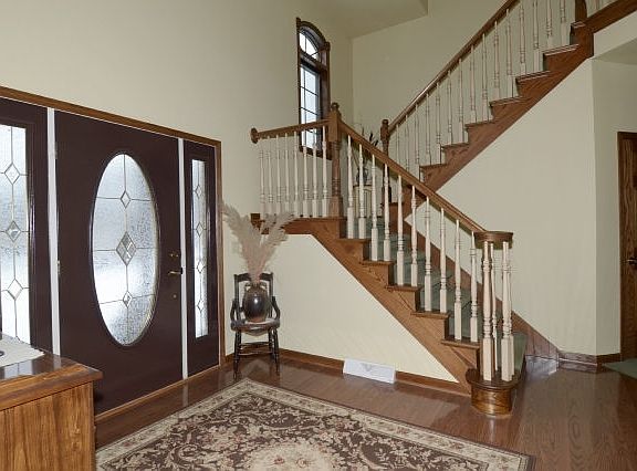 Custom built 2-story w/open foyer & staircase. HWFs in entry, kitchen & formal DR. Spacious kitchen w/cozy dinette; island w/sink;pantry;custom cabinetry & dbl sided FP in kitchen & LR. Master suite w/dblvanity; large WIC & jacuzzi tub. 3+ GA w/access to bsmt. LL w/exposure for future expansion & additional storage and/or a wine cellar or storm shelter. Enjoy spring/summer from either front or back covered porches. 1/2 acre plus lot w/mature landscaping & partial woods in backyard! MVP $349,900-$369,900.