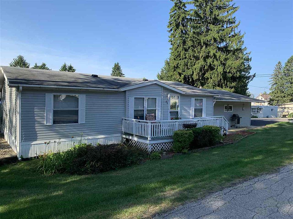 Home on corner lot in Ripview Park. Affordable living with lake access available. Home features 2 car attached garage, 2 bed, 2 full bath, new furnace, dishwasher, some new flooring. Short walk to lake and seasonal club house. Monthly lot rent of $528 covers lawn care, snow removal, taxes, water, sewer & garbage. Easy living in Ripview.