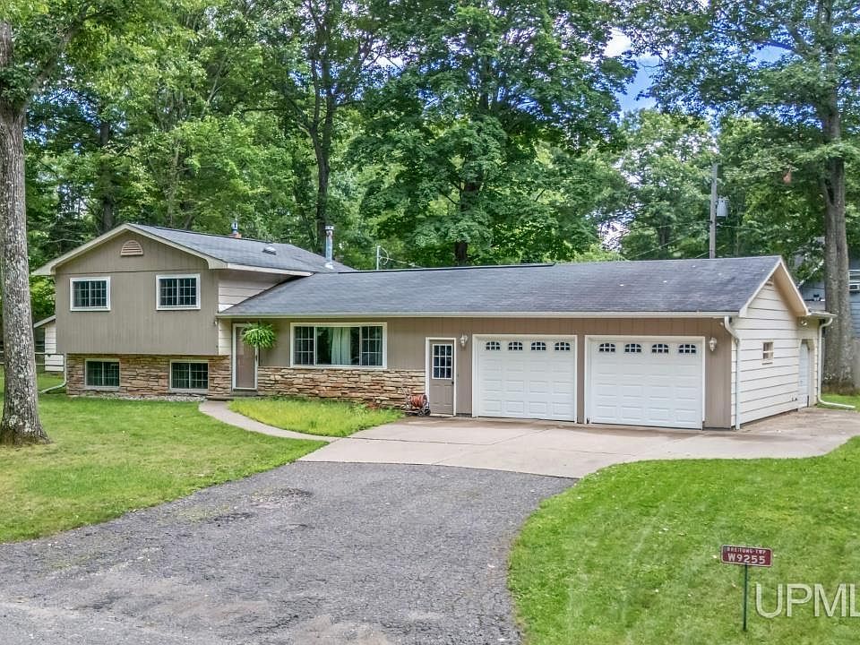 This beautiful 3 bedroom, 1.5 bath home sits on well over 3/4 of an acre lot, tucked away on a quiet street in an idyllic neighborhood that's one of the best kept secrets in town! It's conveniently located just past city limits in Breitung Township, two blocks from Pine Grove, and less than a mile from Timberstone and the ski hill. The comfortable floorplan features open-concept living/dining/kitchen layout on the main floor plus a large mud room with laundry hook-ups. There are three bedrooms and a full bath on the upper level and the lower level features a large family room with gas fireplace and a half bath. Garage space abounds in the 2-car attached garage with additional attached stall off the side of the house and a 1-car detached garage/workshop in the back. Homes in this location don't become available often, so check it out before it’s gone!