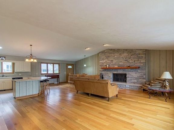 Spend your summer at the Lake! Amazing views, gorgeous sunsets and 80 ft of nice frontage on Lake Ripley. Huge open concept kitchen/great room with floor to ceiling fireplace and hardwood floors- a wonderful space for entertaining. Remodeled Master suite with private bathroom and lake views. The main level bedroom has double closets and an adjacent bathroom. You'll fall in love with the gorgeous lake views from the great room, the porch and the master bedroom. The laundry room is plumbed for a 3rd bathroom. There are two rooms that could be made into additional bedrooms. Many updates including new roof, gutters and updated mechanicals and new well. A great opportunity to own an affordable waterfront property on Lake Ripley!