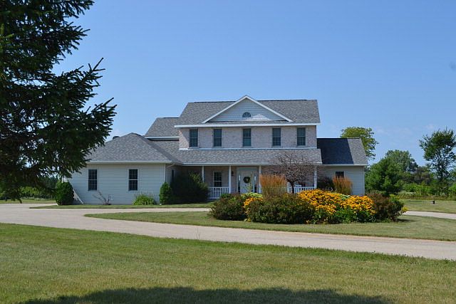 You will love driving up to this prestigious home set back from the road, with beautiful views in every direction. Located on 8.19 country acres with your very own swimming and fishing pond. Relax on the front porch in a rocking chair or enjoy the back brick patio for a barbeque and then star gazing at the firepit. Inside you will find quality throughout. Beautiful wood and slate floors, cathedral ceilings, crown molding, stainless steel appliances, granite countertops throughout, open staircase, wood fireplace and partially finished basement. Plenty of large windows to let the views of the country indoors.
