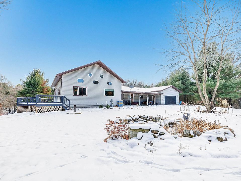This very secluded 4+ bedroom/3 full bath with an oversized attached garage is located on 20.28 wooded acres. All of the rooms are really nice sized, and the Living room is perfect for those large family gatherings. The Sellers recently hired a company to make the trails through the rolling hills on the property, and on any given day you will see deer, turkey and many other animals get use out of them. The upgrades on the home are many, with a few being a new furnace in 2021, new central air in 2022, new roof in 2019, new master bathroom/walk-in closet, remodeled kitchen, all new main floor flooring, remodeled main bath w/laundry. There is a laundry on the main floor and another on the lower level. The list goes on and on...Other zoning is undeveloped acreage (10.28 acres).