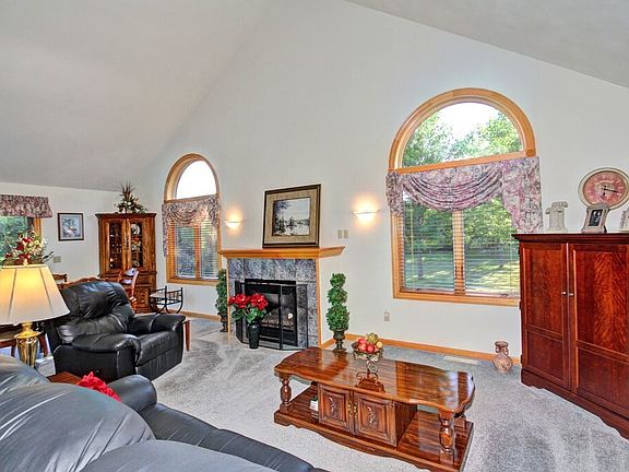 Move in ready home with tons of updates. 3 bedroom 2.5 bath, 3 car garage, open concept with cathedral ceilings and large partially finished area in basement all on 5 private acres. Gas fireplace, first floor bedroom and laundry room along with a maint. free front porch are just a few of the features of this wonderful home.
