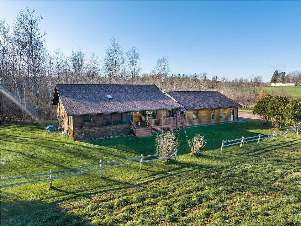 Gorgeous setting for this beautifully crafted log sided home on 26 acres of privacy! Whether you are an avid hunter or wildlife lover, this property has an abundance of deer, turkeys, birds of all kinds and more. One level living featuring an open concept kitchen/living/dining room area, stone fireplace, main floor laundry and master bedroom with private bath. Large 20ft screened in porch is the ideal place to sit and enjoy morning coffee or evenings observing the natural beauty of the land. Additional exercise room and workshop attached to the 36x40 garage. The north fork of the Clam river runs through the west portion creating additional deer habitat as well as opportunities for diverse wildlife. Must see this in person to appreciate the setting!