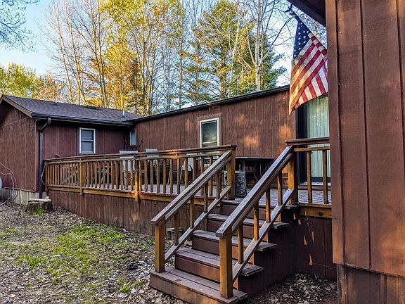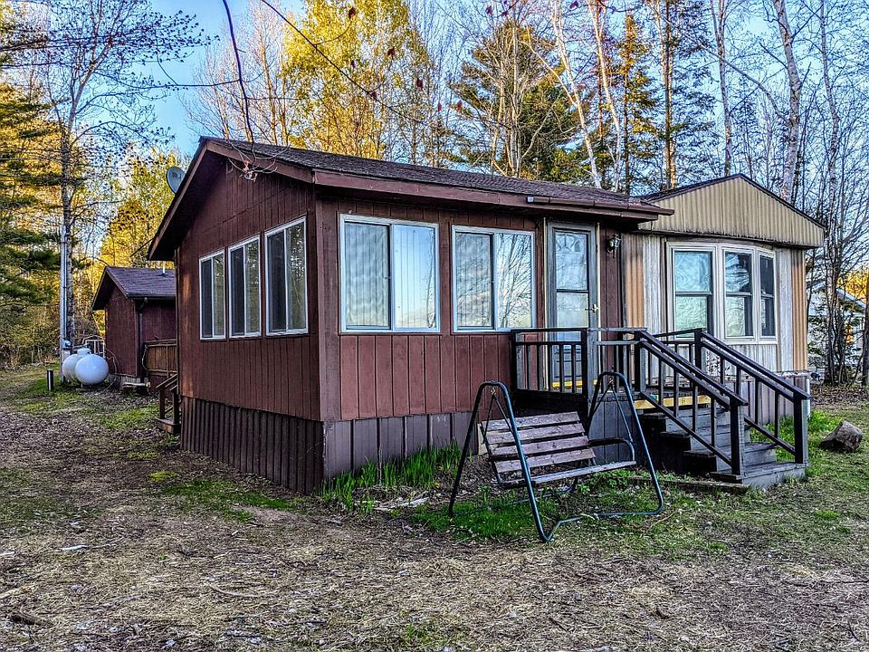 Enjoy breathtaking sunsets with panoramic lakeside views on a level, wooded lot with sandy frontage along the scenic shores of Soo Lake, a Class A Musky Lake. There is a long, winding driveway with a canopy to welcome you. Once inside, there is a convenient entry with a storage closet and fridge. The layout is open, with vaulted ceiling and living and kitchen areas have lake views. The kitchen has recently been updated, and you will love entertaining in the lakeside sun room, or on the sun deck off the living room. The Master Bedroom is spacious, with full bath and walk in closet. There is a 2 car detached garage on a slab with electric service, and a utility shed on a slab with electric service. This location offers easy access to the boat landing and direct ATV and snowmobile trail access. The dock and boat lift are included in sale, and many of the furnishings can be included to make this a turn key offering. Bring your fishing pole and come up North!