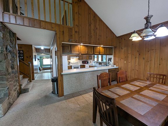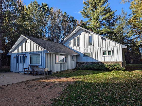 Price Reduced! Discover your Northwoods escape on just under an acre of wooded privacy with 110 ft +/- of beautiful frontage on Lac Sault Dore (Soo Lake). This inviting 3BR, 2BA chalet-style home perfectly captures the lake-life feel with cathedral ceilings, a cozy fieldstone fireplace, and stunning panoramic water views. The open layout and warm wood accents create a welcoming retreat for family and friends. The kitchen offers abundant cabinetry and a peninsula for casual dining. The main level features a spacious family room ideal for relaxing or entertaining, along with a primary suite, guest room, full bath, and laundry with sink and folding counter. Upstairs is a loft bedroom with private bath that provides extra space and comfort. The finished, insulated 30x40 garage offers excellent storage for vehicles and lake toys. With a new roof, furnace/central air and generator, this move-in-ready lake home is waiting for you! Adjoining lot also available—ask for details!