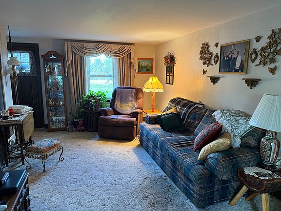 COME TO THE COUNTRY!! SPRAWLING 3 BEDROOM RANCH WITH 3 CAR GARAGE ON APX. ACRE OF LAND! PRIVATE BACK YARD WITH INCREDIBLE VIEWS OF FARMLAND FROM YOU DECK! STEP INSIDE TO SPACIOUS FRONT FAMILY ROOM- HUGE COUNTRY EAT IN KITCHEN W/STOVE, REFRIGERATOR, MICROWAVE. LARGE LIVING ROOM. NEWER WINDOWS. HUGE FRONT BEDROOM (USED AS SEWING ROOM), 2 FULL BATHS, MAIN FLOOR LAUNDRY AND 2ND HOOKUP IN BASEMENT FOR WASHER/DRYER. Extra shower in Bsmt also. MASTER SUITE ON SOUTH SIDE HOME HOSTS WALK IN CLOSET AND GREAT VIEWS OF LAND! SHED. HEATED DETACHED GARAGE...30X24. FURNACE LESS 5 YRS NEW. NEW HOT WATER HEATER. (THIS IS AN ESTATE SALE!)