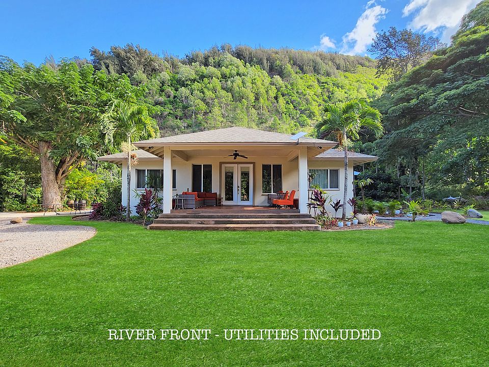 - Exterior features: Beautiful river runs through our property swim, enjoy nature., Electricity included in rent, Fire pit with reclining chairs, overlooking the river, ideal for stargazing., Garbage included in rent, Garden, Heating: Propane / Butane, Internet included in rent, Keyless entry door locks. No more fumbling for keys., Organic banana, taro, Hawaiian chili pepper, orange, lime, lemon, calamansi grown on-site., Outdoor movie night: Jumbo 12-ft screen, family fun under Maui sky., Recreation area: pool table, ping pong, 75-inch TV, bar vibe., Utilities fee required, Utilities included in rent, Water included in rent