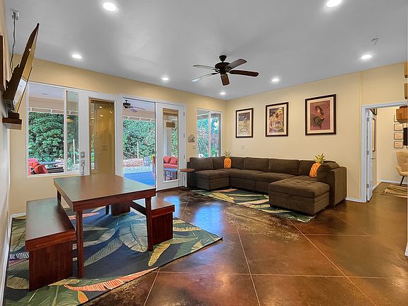 Furnished lanaiGated entranceThrilling outdoor movie theaterVibrant hawaiian tropical gardenCharming wooden farm tableEnchanting riverside fire pitLaundry facility