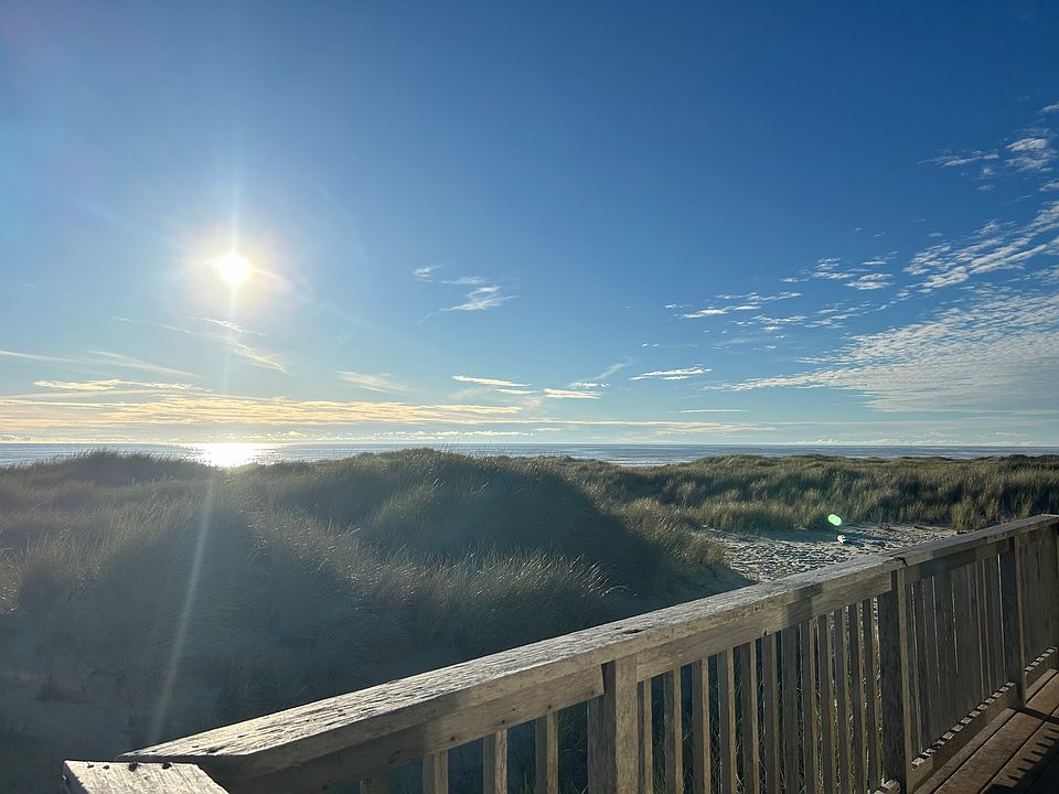 Mobility note: there are stairs between the two levels, stairs from the western balcony down to the dunes/ beach, and the driveway has a short incline.