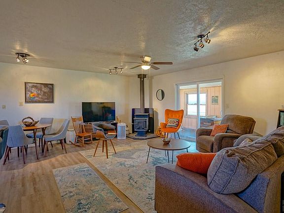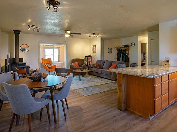 Experience stunning mountain views and the convenience of single-level living with this ranch-style home located in Phase #1 of Navajo Ranch Resort—which allows horses! This 3-bedroom property boasts an open floor plan connecting the living room, dining area, and kitchen, creating a seamless and inviting space. The living room features a charming free-standing wood stove, while the kitchen is outfitted with new cabinets, modern appliances, and granite countertops. The home has been thoughtfully updated with newer carpet and vinyl flooring throughout. Additional spaces include a private utility room and a versatile office or storage room to suit your needs. Outside, the front porch offers two unique areas: an open-air sitting space perfect for enjoying the fresh mountain air, and a covered sunroom for year-round comfort. The oversized one car garage features a heated room, storage loft, and easy access to the crawl space. The property also includes an old horse corral, abundant mature trees, and unbeatable Mountain View's! With easy access from the paved, county-maintained road, this home combines tranquility with practicality, making it an exceptional find.