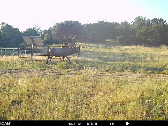 Prescott Ranch is rich in natural diversity, featuring arroyos and rolling terrain blanketed with mature piñon pines, scrub oak, and cedar. The land is well-watered with multiple wells, seasonal dirt tanks, and a robust internal road system. Full perimeter fencing provides excellent access and ease of management.