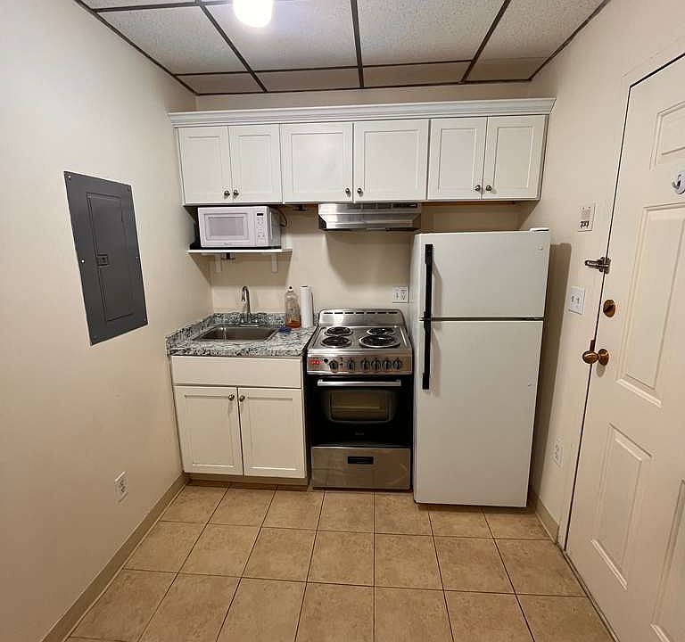 Studio apartment with tenant responsible for electricity only. Laundry is located in the basement, accessible via the back staircase. One parking space included.