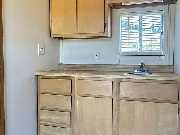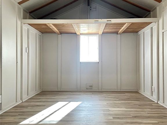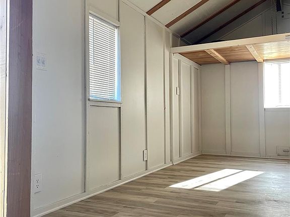 Travel trailer has been recently renovated. Off grid luxury! Complete solar electrical system with regular outlets, sleeping loft, kitchenette, and attached enclosed storage shed. No water.