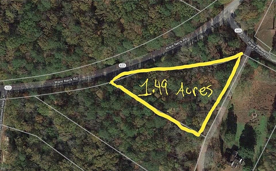 Private wooded building lot in Ware Neck on 1.5 acres. Build your dream home!