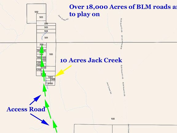 10 Acres, excellent road access, located in the Jack Creek Draw, just above Barry Reservoir, about 3 miles, this great parcel is in an area that is surrounded by tens of thousands of acres of BLM Public Lands to play on. If you have horses, 4-wheelers or other types of recreational toys, or simply wish to start a homestead or hunting camp, this is definitely for you. Zoned A2 and in an area of a couple of other cabins/homes, this might be right for you. This huge 10 Acres has BLM on two sides!!No owner carry and may require a C.U.P. permit to develop if desired.Warner HWY 140 turn @ BLM 61064 then turn left at Barry Reservoir, follow road to property. GPS and directions are in the photos, topos, maps, on the MLS.