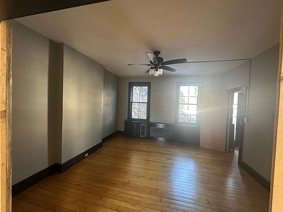 Two story apartment with fresh paint and beautiful hardwood floors. Spacious Bathroom includes tub and washer and dryer. First floor large bedroom can be split into 2 bedrooms or opportunity for office space. New kitchen cabinets with granite countertops and new stainless steel dishwasher, stove and microwave. New flooring in kitchen and bathroom. Charming front hallway with stairway to 3 bedrooms on second floor. Large 3 season porch.