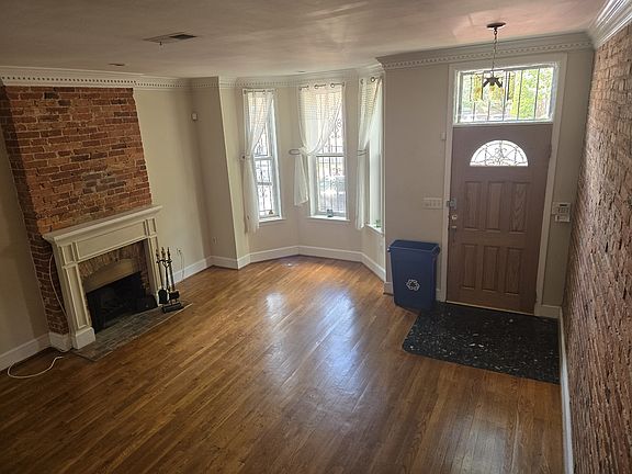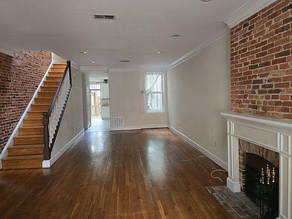Exposed brickfaceCentral airAlarm systemUnique architectural detailsRenovated brick houseFront gardenHardwood floors