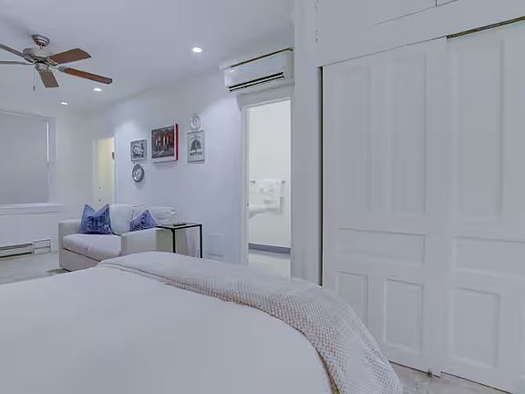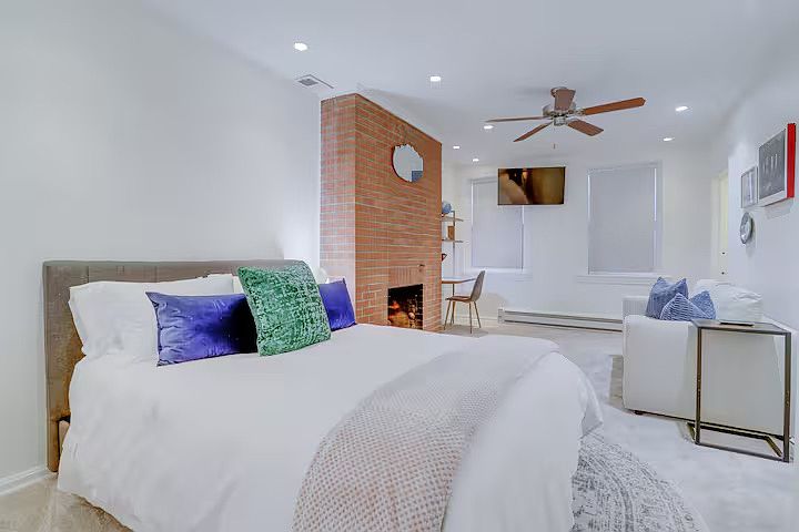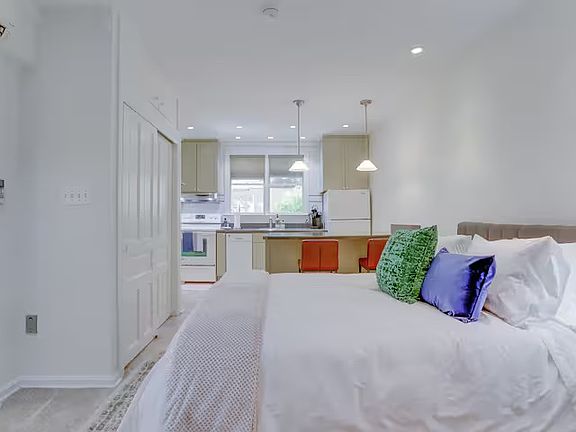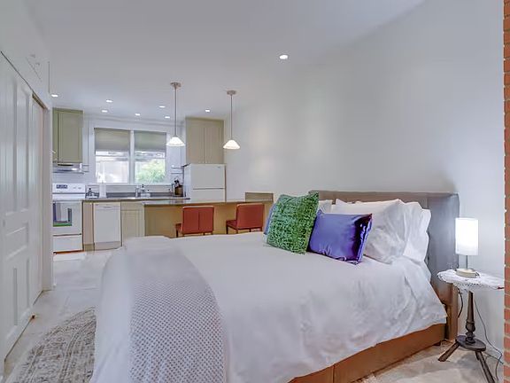 Welcome to this charming & spacious studio apartment in the best part of Capitol Hill, a cozy haven that seamlessly blends comfort and style. As you step through the inviting vestibule, you are greeted by an open-concept living space adorned in cool neutral tones. The well-designed kitchen features modern appliances and spacious countertops & cabinets. We provide everything you'll need to microwave a meal, make a cup of coffee, or cook an entire dinner. The living area is thoughtfully arranged with a comfortable sofa with a pull-out full-size bed, a smart-TV, a large closet, and a desk, creating an ideal space for relaxation and entertainment. The bed is accompanied with plush bedding including high quality linens, 2 gel pillows & 2 down-feather pillows. The bathroom has a shower & tub, pedestal sink, & heated tile floors.
