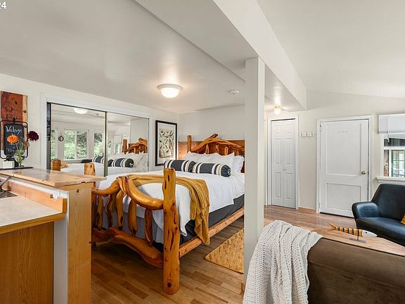 The Twin Cedars cabin is perched right on the edge of the Washougal River, with access to deck space, riverside beach, and excellent swimming/fishing holes. Just 5 minutes from downtown Washougal, and 2 minutes outside of city limits, this riverfront property offers a lot of nature while still being close to town. Full bathroom with bathtub/shower combo. Fully equipped kitchen with full-size refrigerator, oven, microwave, and dishwasher. Private parking and private driveway (two cabins on the property, each with their own driveway and parking).
