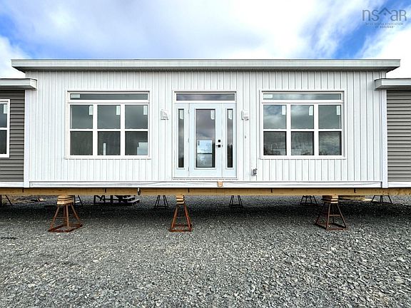 Now available for viewing in Bridgewater, NS, is a brand-new, contemporary 3-bedroom, 2-bathroom Kent Home. This 1,184 sq. ft. single-level residence, offered by The Home Centre (Bridgewater), is set to be placed on an approximately 1.3-acre lot in Waterloo, Nova Scotia. The design provides privacy for the primary bedroom, separated from the other bedrooms, and features a spacious kitchen and dining area that flows into the living space. It also includes water-resistant laminate flooring throughout and comes with a 10-year structural warranty. The listed price includes the home (with delivery and setup), the building lot, steps, a mini-split heat pump, an appliance package, and allowances for site preparation, septic, and well installation. Additional designs and pre-built inventory are also available.