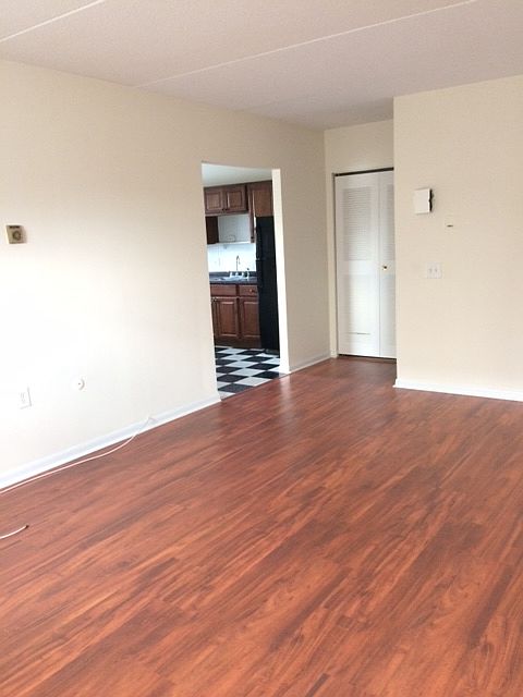 Hardwood floors, big living room, large eat in kitchen, large bedroom with big closet, one full bath.