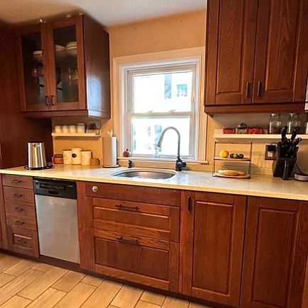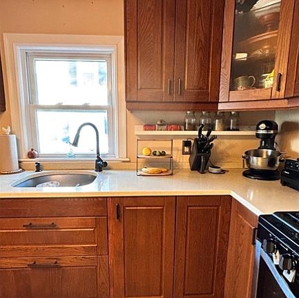 This charming single family home boasts hardwood floors, high ceilings, central a/c, spacious rooms with large windows that allow in an abundance of natural light. The eat in kitchen has modern updates that included granite counter tops, shaker style cabinets, and is fully equipped with stainless steel appliances including a gas range and dishwasher. Additionally there are 2 good sized bedrooms with big windows and closets, a partially finished basement with washer and dryer and extra storage and large yard!