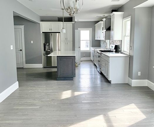 Gorgeously renovated 4 bed, 2 full bath unit on the second and third floors of lovely 2-family. Everything new - engineered hardwood floors on the first level, engineered vinyl plank flooring on the top floor, new bathrooms, beautiful new kitchen, new windows, Central AC. Main level has living room, dining room and massive open-concept kitchen with large island with bar stool seating and stainless steel appliances. 3 bedrooms and one full bath. Upstairs level boasts huge master suite with private full bath, 2 double closets and access to in-unit laundry. Prime East Watertown location on quiet, tree-lined street. Video walkthrough available.