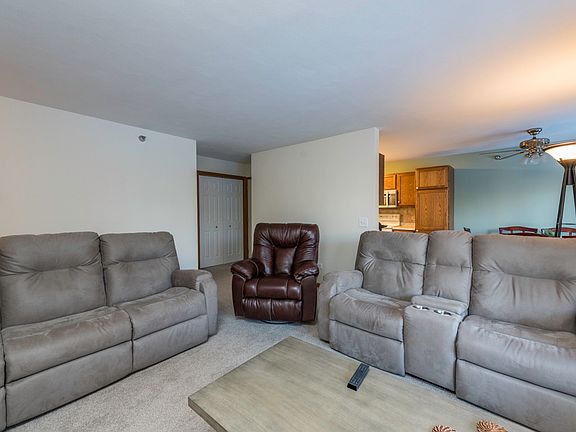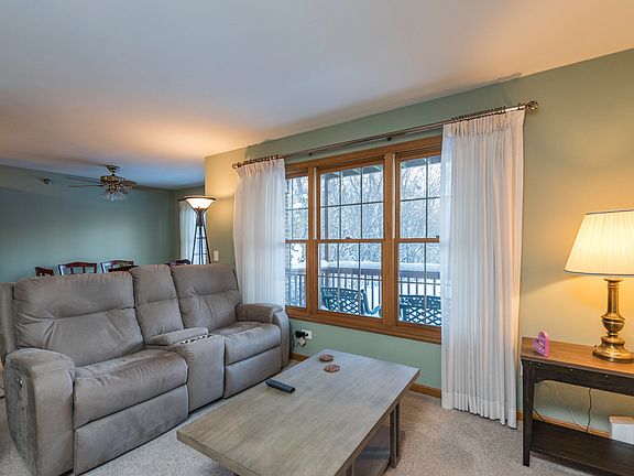 Welcome to your quiet, peaceful retreat in the heart of a charming, well-established neighborhood surrounded by nature. This main-floor ranch condo offers the ideal blend of comfort, convenience, and tranquility. Inside, you'll find 2 bedrooms and 2 full baths, including a spacious master suite with its own walk-in closet and accessible walk-in shower! The large kitchen/dining room combo plenty of room for cooking, gathering, and everyday living. Step out onto the beautiful deck just off the dining area-perfect for morning coffee, relaxing evenings, and enjoying scenic views (with the occasional deer visitor!). An attached, extra-deep 1-car garage offers generous storage space, while the main-floor laundry room adds true convenience. The lower level is completely heated offering you a dedicated storage unit and a huge flexible community space (with half bath) ideal for club meetings or personal gatherings. LOTS NEW! This condo has been thoughtfully updated including a new furnace with humidifier (2024), new AC 2024, new water heater (2024), fresh paint and carpet (2024), and a new microwave (2025). Conveniences like the EcoBee wifi thermostat and MQ garage door opener included! Newer roof as well! This condo offers affordability, convenience and a serene, nature-filled setting. Don't miss your chance to make this opportunity - it's not too late to make it you "Home for the Holidays".