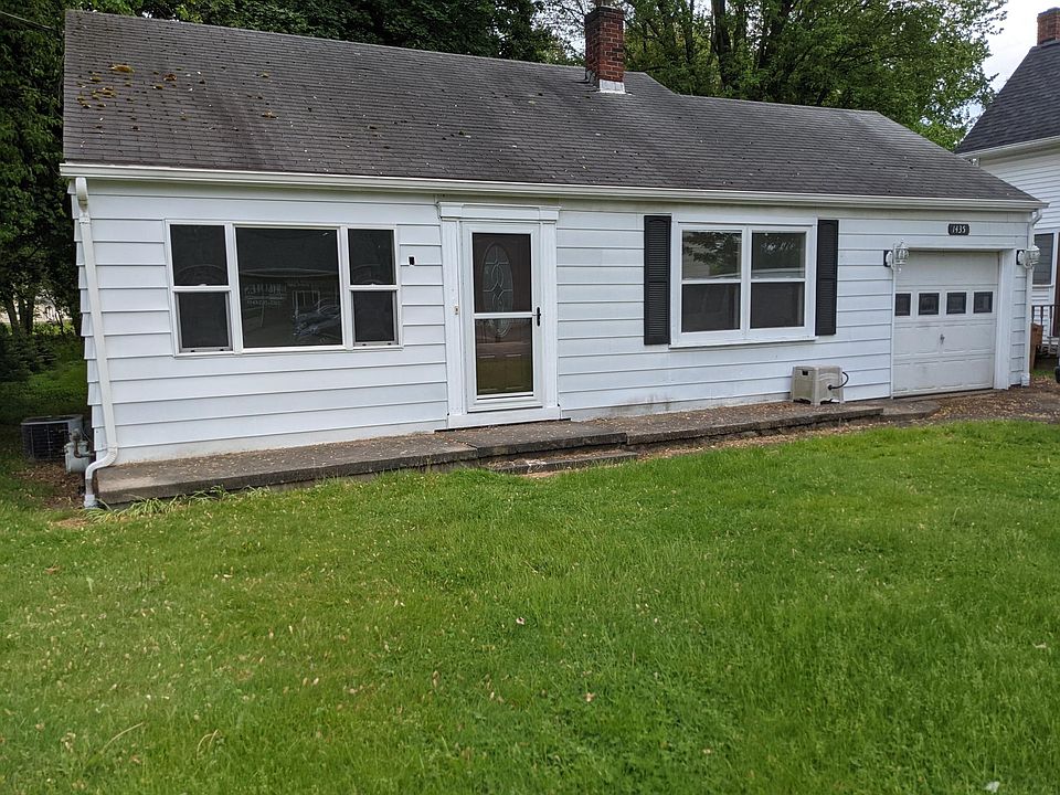 Recently remodeled throughout house. New replacement windows and new bathroom. Large deck overlooking an acre of private back yard. House is fairly small but is very quaint. It is not suitable for a large family. It consists of a eat in kitchen, Living Room, Two Bedrooms, bathroom and a single car garage. The lower level, basement is accessed through stairs in the garage.