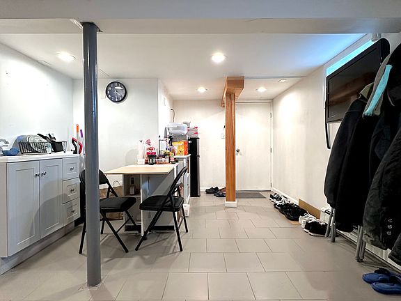 This comfortable one-bedroom, one-bathroom private apartment offers a welcoming living space designed for both simplicity and comfort. The open-concept dining and living area features built-in wall closets with shelving, providing convenient storage solutions. The kitchen area includes a sink and a refrigerator, offering flexibility for a compact setup to suit your needs.