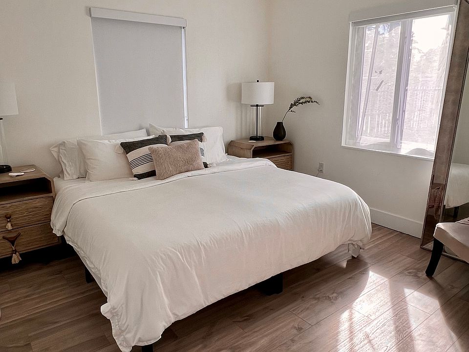 Enjoy this private room which is bright and cozy with a serene view of the pool and backyard. The entire home is newly renovated with a spacious living room, dining area, kitchen, laundry room, pool/gazebo and backyard. The entire home is for your comfort and enjoyment. The neighborhood is tranquil with nearby parks and restaurants/shops or anything else you would like to indulge in. Big screen TVs for your entertainment. Fiber internet. One shared bathroom. Plenty of free parking. One cool roommate.