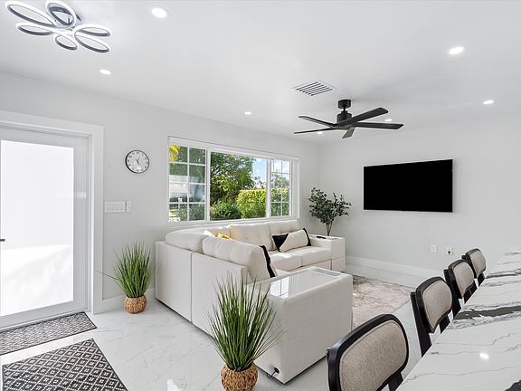 The newly remodeled West Palm Beach home two blocks from intercoastal. It s the perfect place for a romantic getaway, small friends and family gatherings or a work from home vacation. Privacy, unbeatable location, charm, spaciousness, and peace makes this place very special. This is a single level house. With an open floor plan, 3 bedrooms, and 2 bath, fully furnished and equipped. Fully fenced back yard, outdoor kitchen, bar, grill, and furniture. The house comfortably sleeps 6 in beds, and can host up to 7 guests maximum. Modern amenities, including fast WIFI, sectional consoles to pair you Bluetooth device, play music, and charge your phone. The living area has comfortable furniture, a Smart 65" TV.The kitchen is fully stocked, futures quartz countertops, cabinets. The Kitchen even has a pot filler above the range, wine cooler, microwave, dishwasher, refrigerator with build-in ice maker, toaster, pans and pots, spices, cooking oil, tea kettle, Keurig coffee machine, and more.All 3 bedrooms has hand picked decor, sealing fans, darkening windows shades, and build- in closets.Two bedrooms has a queen size beds. 3th - two twin beds with extra pillows and blankets.The living room has full size sleeper bed. Air mattress for additional sleeping. Extra pillows, blankets, and bed linens. The primary suite boast a new luxurious ensuite bathroom, glass enclosed wet room, soaker tub, rainfall shower and body jets, and a smart toilet with build -in bidet. Primary bedroom has a private access to the outdoor space and outdoor kitchen area. Full size washer and dryer in unit, We provide beach towels, and chairs. Free parking on the street and drive way.