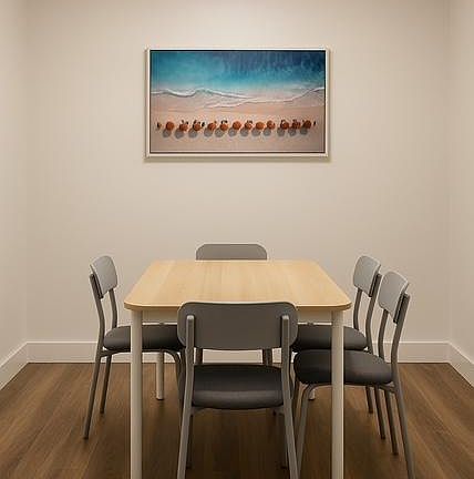 The kitchen is equipped with a fridge, sink, oven, stovetop. It's the perfect spot for you to cook at home and save money.