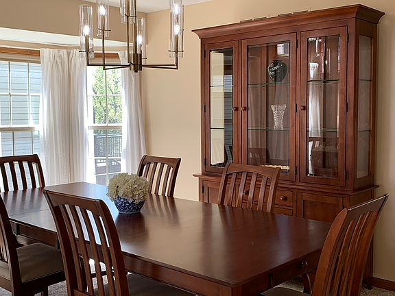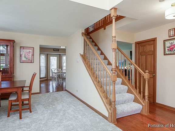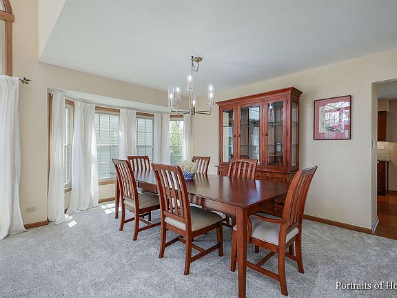 What a beauty from the moments you walk up. Stained Concrete Driveway, to dramatic high pitched roofline and beautiful brick front. How impressive. Over 2500 square feet, 3 walk in bay windows. 2 story entrance and Living Room, NEW carpeting in 2023 Newer engineered hardwood in Kitchen and foyer 5 yrs old, NEWER cabinets, granite counters, under cabinet lighting 5 yrs ago. Open to large Family Room with wood burning fireplace and loads of Newer windows (excluding front windows) overlooking beautiful yard with large fenced back yard, fantastic for game and play sets. A wonderful family room to gather a big crowd. Primary Bedroom has tray ceilings, updated bathroom only 5 yrs old with luxury soaking tub and separate double shower with clear glass doors, and custom built ins in the walk in closet. Fantastic partially finished basement large enough for games, entertainment and exercise area. Plus plenty of space for loads of storage. Other big money items replaced are majority of windows 2 yrs old, Newer Vinyl siding & garage door, 50 gal HWH in 2020, Furnace/CAC 95% High Efficiency 8 yrs old. Minutes to Northwestern Medical Center, Cantigny Golf, Shops, 355 minutes away, and minutes to train. Fantastic location and condition