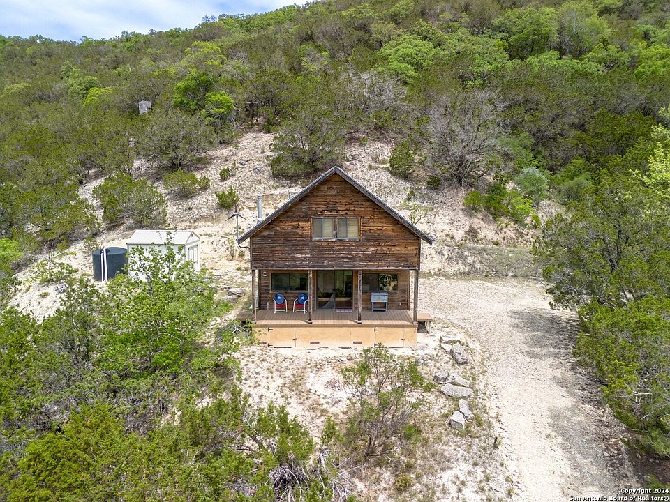Located on White Bluff Road in Medina, TX, this 14.83+/- acre property offers an off-grid lifestyle surrounded by the natural beauty of the Texas Hill Country. The property includes a two-story furnished cabin built in 2009 with approximately 1,344+/- sqft of living space. The cabin features 4 bedrooms, 2 bathrooms, a small sleeping loft, and a covered front porch overlooking the hillside. Interior details include yellow pine floors, tile countertops, and a wood-burning fireplace that enhances the cabin's rustic charm. Built for self-sufficient living, the property operates off-grid with solar power, a backup generator, a rainwater catchment system with UV filtration, and propane utilities. The acreage has partial perimeter fencing, and hunting is permitted. The elevated setting offers long-range Hill Country views and access to the Medina River (subject to drought conditions). Combining privacy, functionality, and natural scenery, this property provides a rare opportunity for a sustainable Hill Country retreat. Owner financing may be available, offering flexibility for qualified buyers. Schedule a private showing and come see what makes this one-of-a-kind retreat so special!